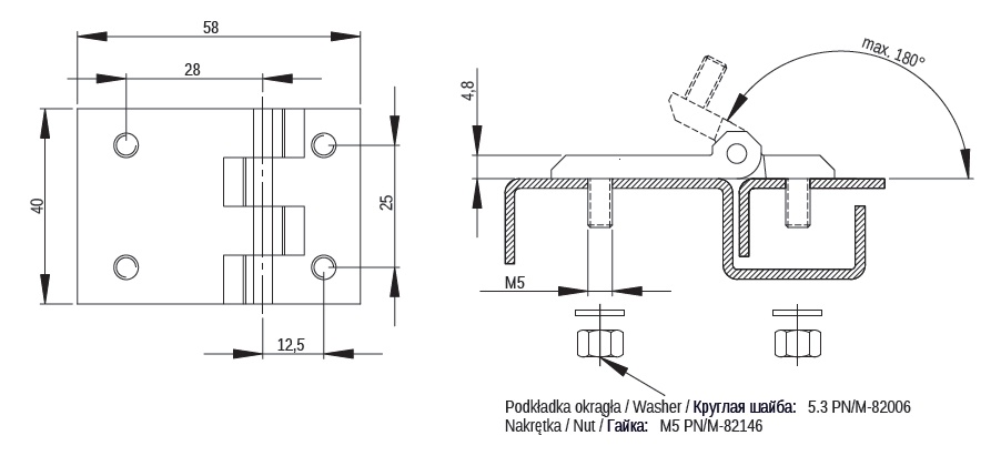 Петля – PA Grivory; цвет чёрный, коричневый, серый согласно RAL; возможны другие цвета под заказ.